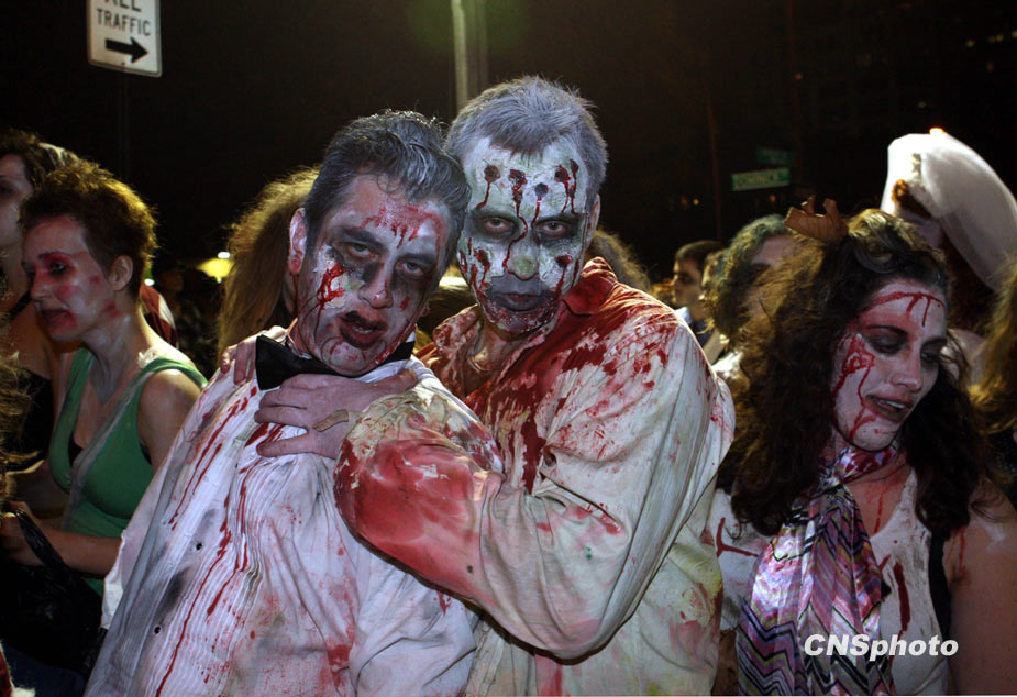 10月31日是西方的“萬圣節”,世界各地的群眾穿著奇異的服飾、打扮鬼魅的造型迎接“鬼節”的到來。圖片來源:中國新聞網