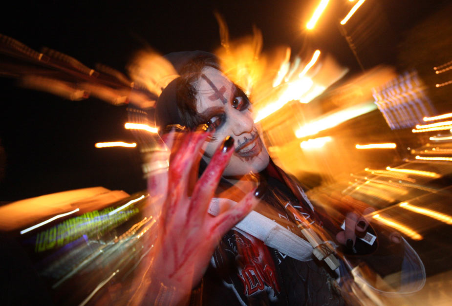 10月31日是西方的“萬(wàn)圣節(jié)”,世界各地的群眾穿著奇異的服飾、打扮鬼魅的造型迎接“鬼節(jié)”的到來(lái)。圖片來(lái)源:中國(guó)新聞網(wǎng)