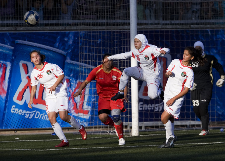 周一(26日),約旦和巴勒斯坦兩國女子足球隊(duì)進(jìn)行了一場(chǎng)友誼賽。 來源:中國新聞網(wǎng)