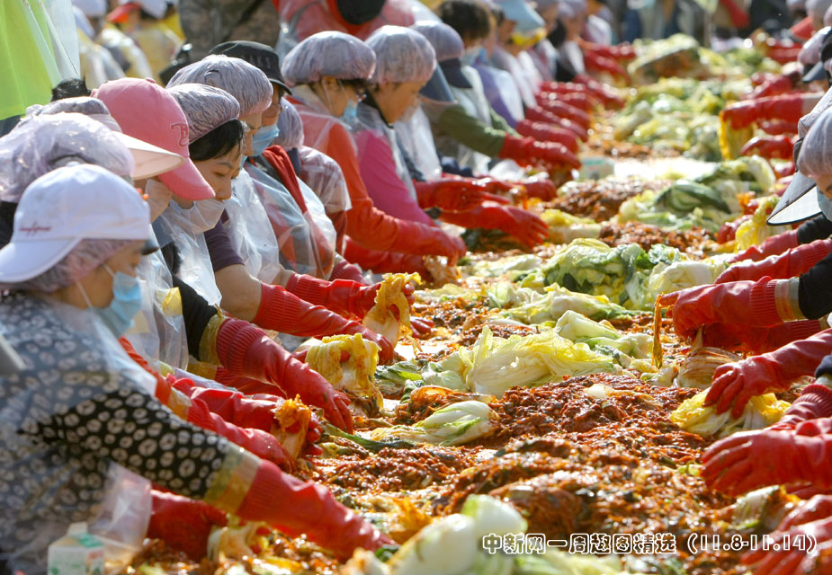 11月9日,約2700名韓國志愿者在首爾一所學校的操場上制作泡菜。>>點擊觀看詳細內容