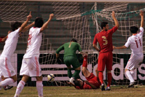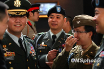 慶祝中國人民解放軍空軍成立60周年飛行表演,11月15日上午在北京沙河機場舉行。表演按八一飛行表演隊4架殲-10飛機表演12個動作和6架殲-7GB飛機表演15個動作,分四機對頭交叉、四機菱形隊大坡度盤旋、單機小速度平飛等27個動作,其中四機對頭交叉動作是這次表演中技術難度較大的動作之一,這是國產三代飛機和國產二代飛機首次同場競技表演?哲娞鴤氵\動大隊30名運動員表演了4個跳傘科目。中新社發 宋吉河 攝