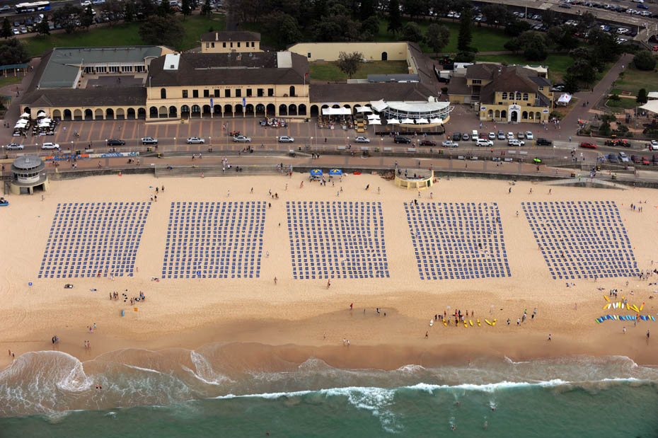 11月15日,悉尼癌癥理事會在邦迪海灘放置1700條浴巾“曬”日光浴,場面異常壯觀。希望通過此次活動提高人們對曬日光浴可能導致皮膚癌的認識。圖片來源:中國新聞網