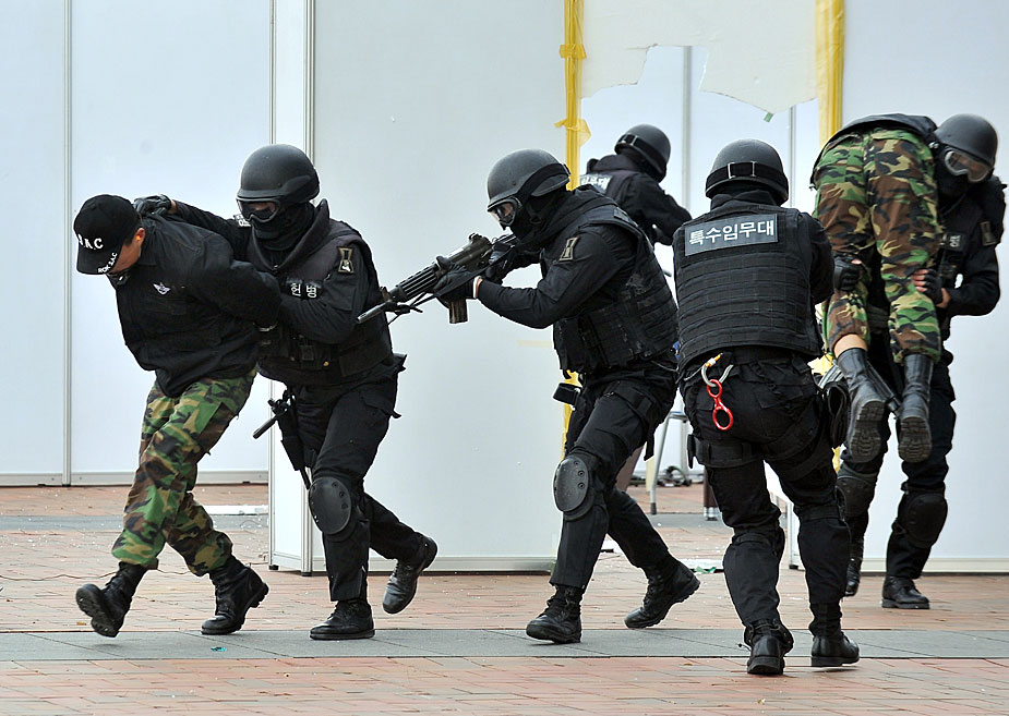 11月16日,韓國在距首爾以北30公里處舉行了由特種兵參與的反恐演習。圖片來源:中國新聞網