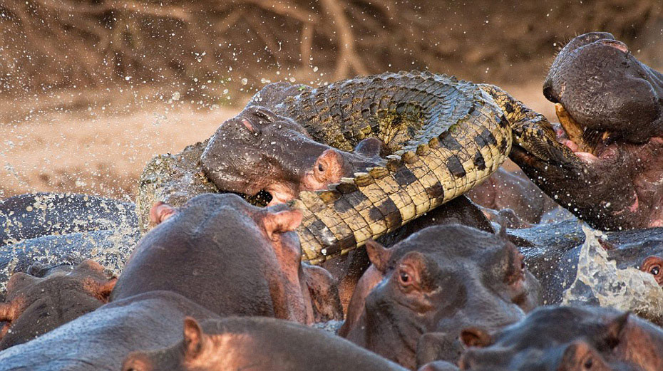 蠢鱷魚混入河馬群 引眾怒被活活咬死
