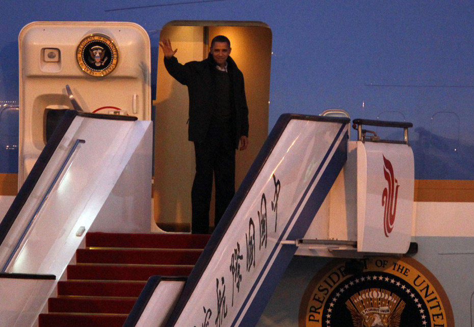11月18日,北京首都國際機場,美國總統奧巴馬結束訪華行程乘坐專機離開北京。