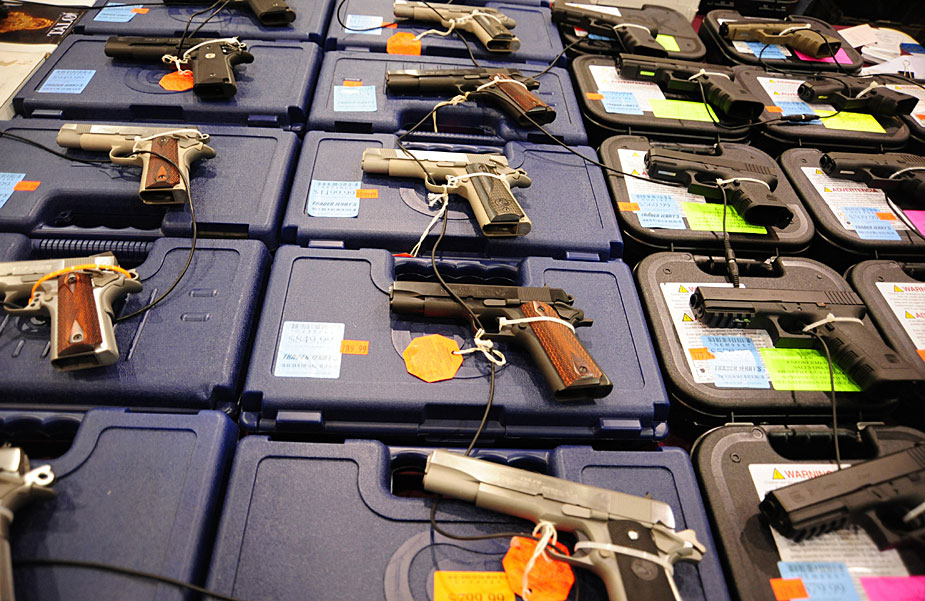 11月21日,美國弗吉尼亞州尚蒂伊舉辦了為期三天的國際槍械展覽,眾多廠商和收藏家抵達參觀。圖片來源:中國新聞網