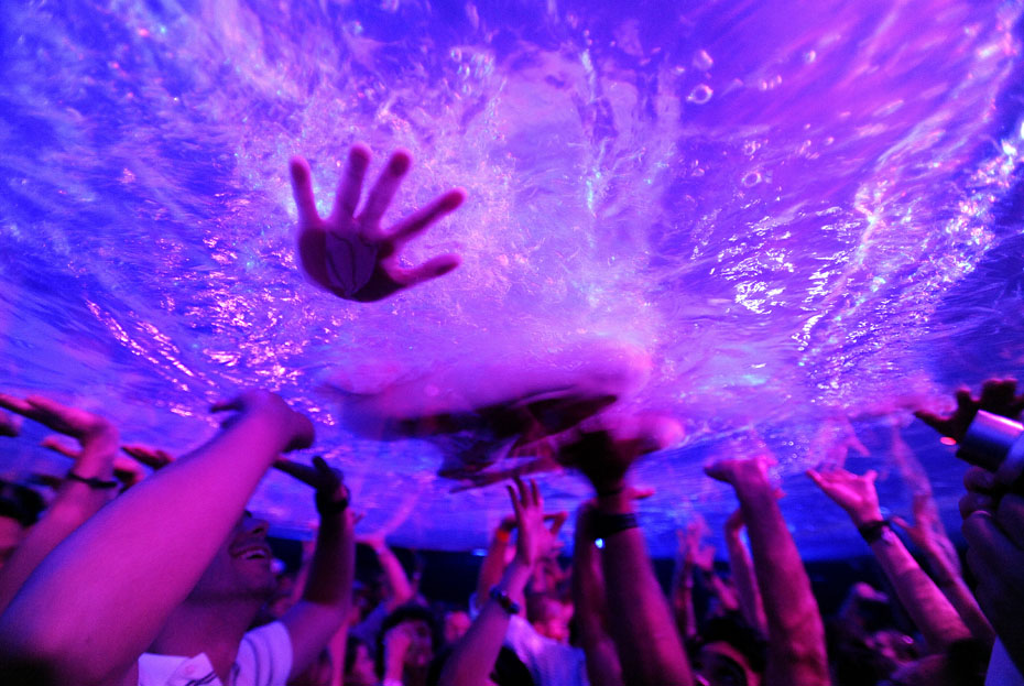 近日,阿根廷演員在加拉加斯舉行了一場名為“蠻力”水下演出,光怪陸離的燈光配合水中的演出吸引了大量觀眾到場觀看。圖片來源:中國新聞網