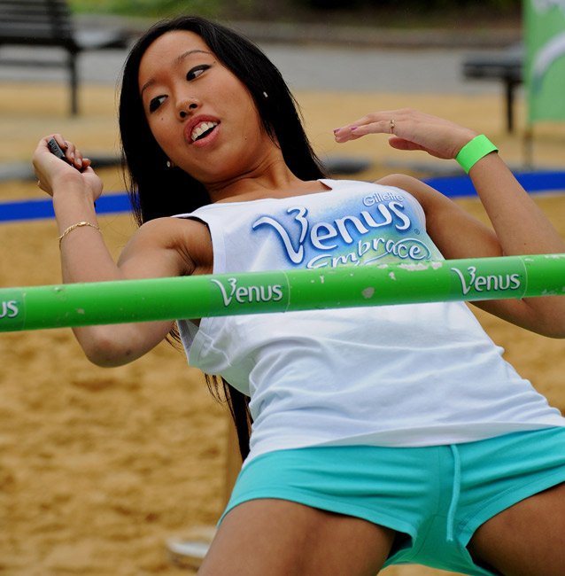 11月24日,在澳大利亞悉尼舉行了一場“低桿平衡”大賽,超過150名美女參加了這一賽事。最終一位年僅19歲的美女以出色的柔韌性仰面通過了僅為55厘米高的橫桿,獲得賽事頭名。