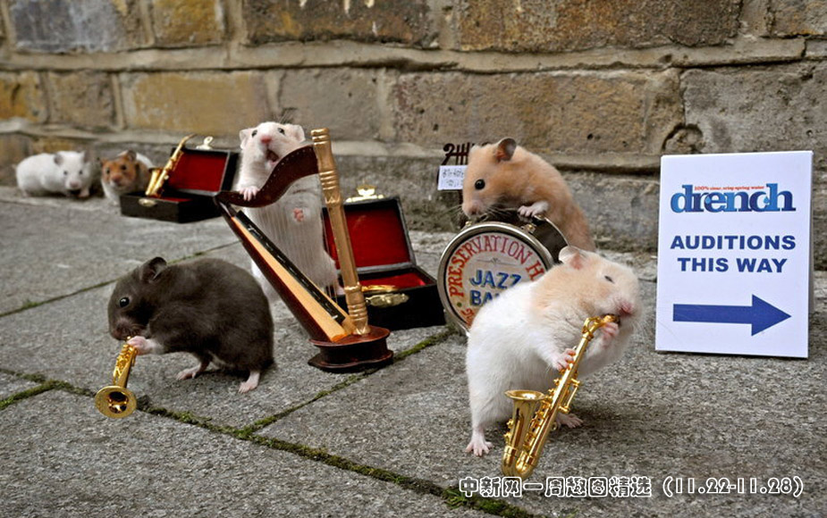 近日,一群小倉鼠在倫敦一家咖啡館外“吹奏”迷你樂器,為一個電視節目試鏡。圖片來源:中國新聞網>>點擊觀看詳細內容