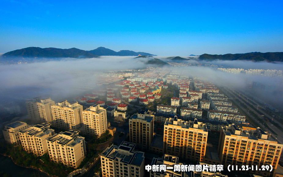 25日(周三),浙江象山半島出現罕見的平流霧。圖片來源:中國新聞網