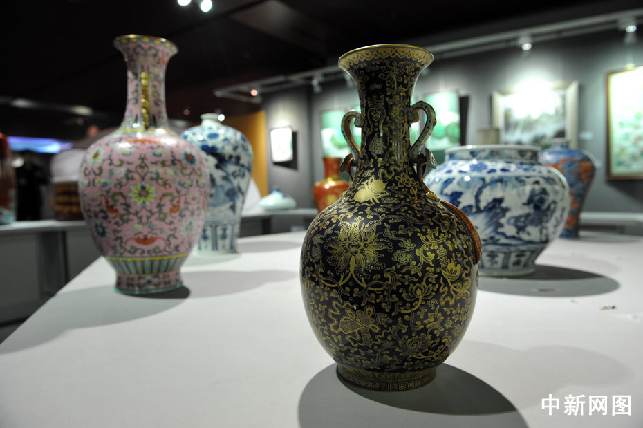 圖為現(xiàn)場展示的景德鎮(zhèn)精品陶瓷作品。中新網(wǎng)記者 金碩 攝
