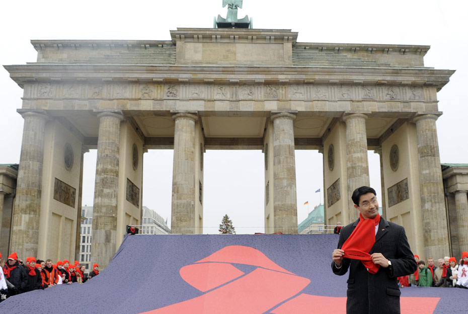 11月30日,德國衛生部長在為艾滋病日做宣傳。12月1日是世界艾滋病日,2009年世界艾滋病日的主題是“普遍可及和人權”。世界各地民眾組織各種活動呼吁人們關注艾滋病。圖片來源:中國新聞網