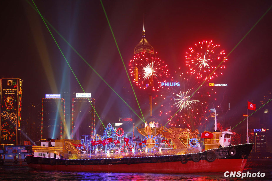 12月5日晚,第5屆東亞運動會開幕式在香港維多利亞港舉行,同時配以花船巡游、燈光效果和煙花匯演,成為一屆富有特色的水上開幕式。中新社發(fā) 盛佳鵬 攝