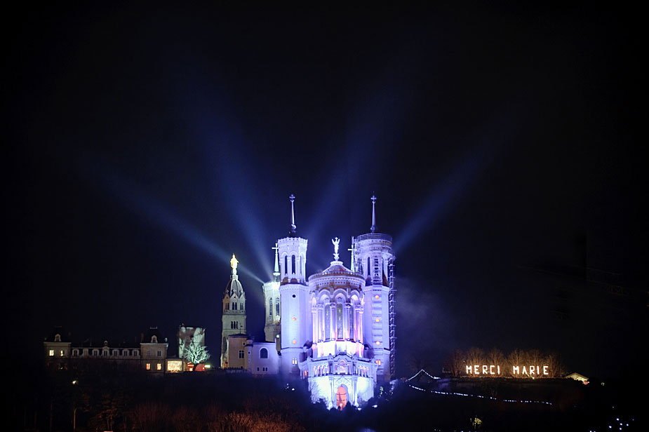 12月5日,在法國里昂,人們欣賞燈光表演。第11屆燈節到來之際,里昂城被五彩變幻的燈光裝飾。圖片來源:中國新聞網