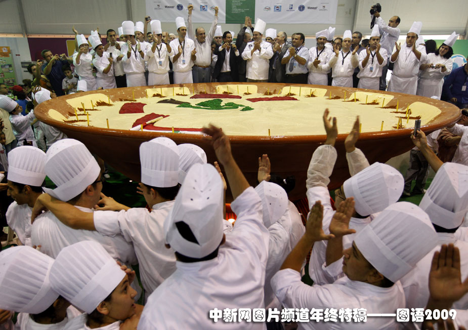 世界最重豆沙餅:10月14日,黎巴嫩廚師制作出2056公斤巨型豆沙餅,打破了世界吉尼斯紀(jì)錄。圖片來源:中國新聞網(wǎng)