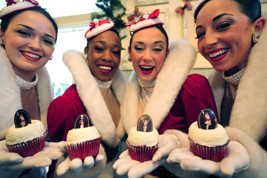 12月8日,美國紐約洛克茨無線電城“火箭女郎”舞蹈團的隊員們近日與蛋糕店聯合推出演出套票,買蛋糕的觀眾可以以更優惠的價格購得演出票。圖片來源:中國新聞網