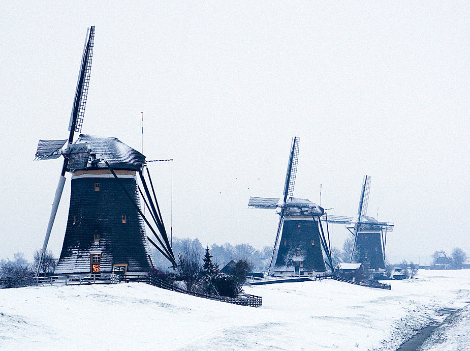12月17日,荷蘭風(fēng)車(chē)上積滿雪花。