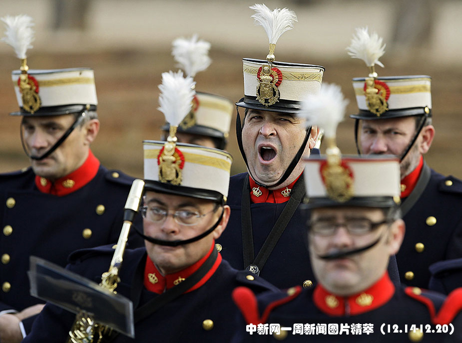 14日(周一),西班牙在帕多皇宮舉行越南國家主席來訪的歡迎儀式,一名皇家衛(wèi)隊衛(wèi)兵打起了呵欠。圖片來源:中國新聞網(wǎng)