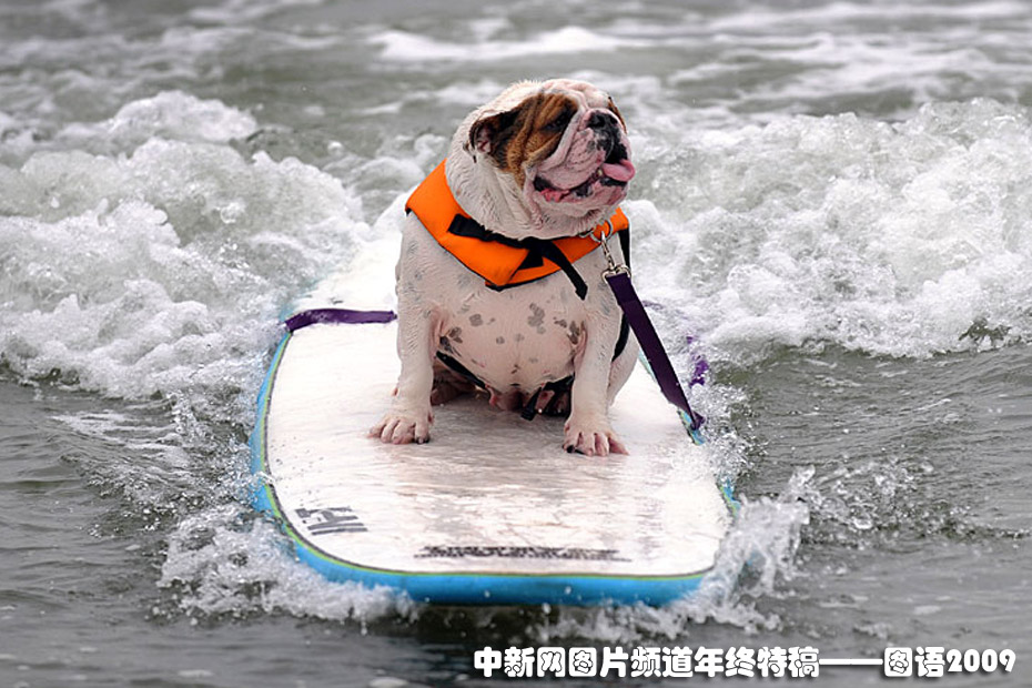 小狗沖浪比賽-讓人忍俊不禁--6月20日,在美國加利福尼亞州帝國沙灘舉行了一場小狗沖浪比賽,小狗們表現得十分認真。