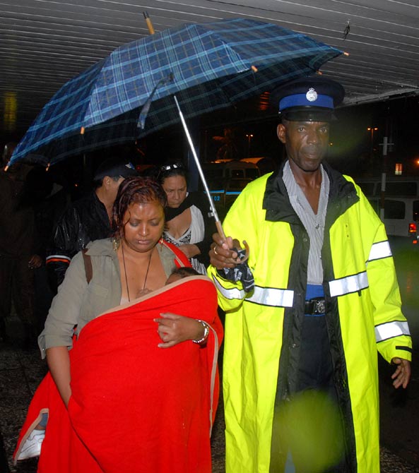 美國航空公司一架波音737-800型客機22日晚抵達牙買加首都金斯敦諾曼曼利國際機場時沖出跑道,致機上154人中的92人被送往醫院,但均無生命危險。圖為疏散受傷的乘客。
