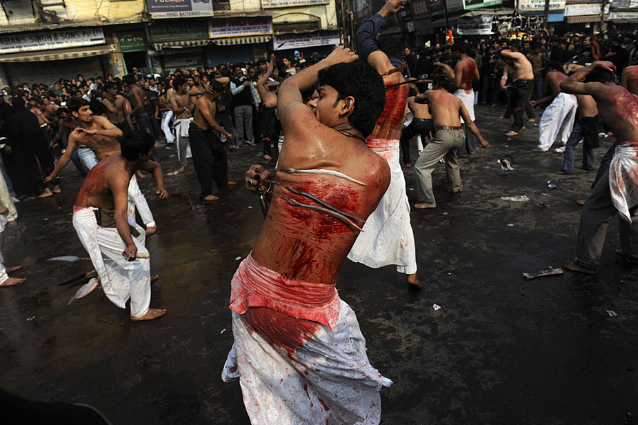12月28日,印度穆斯林慶祝阿舒拉節。一些當地穆斯林在儀式上用鐵鞭抽打自己,以此慶祝節日。圖片來源:中國新聞網