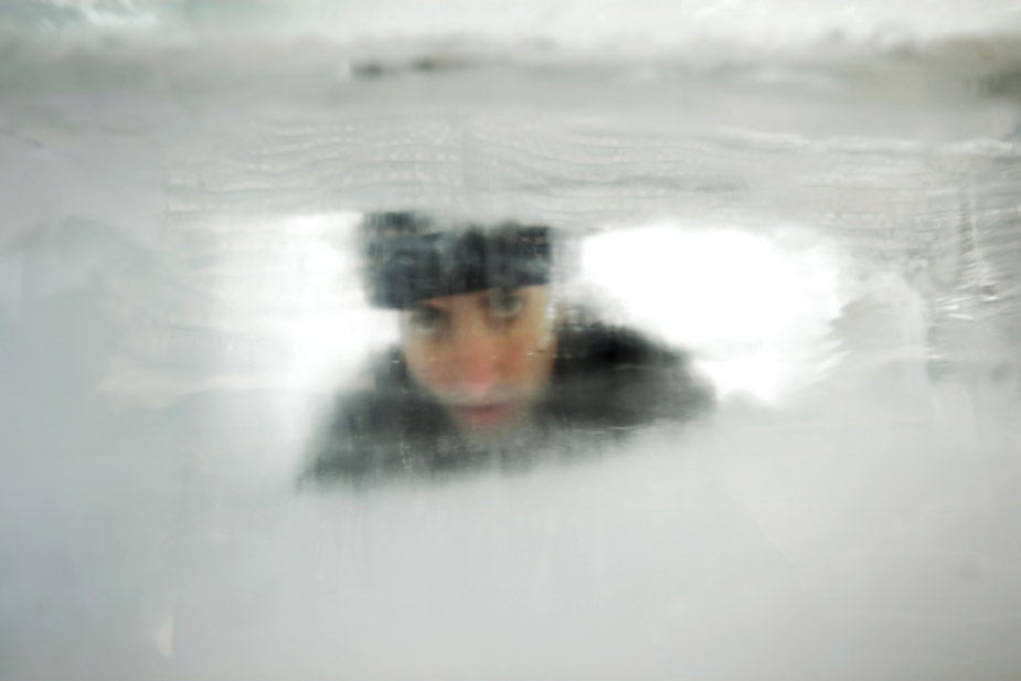 當地時間29日早上8點起,以色列魔術師赫齊·達揚在位于特拉維夫的拉賓廣場上,達揚赤身進入一塊8噸重的冰塊里,開始了挑戰冰屋生存世界紀錄之旅。圖片來源:中國新聞網
