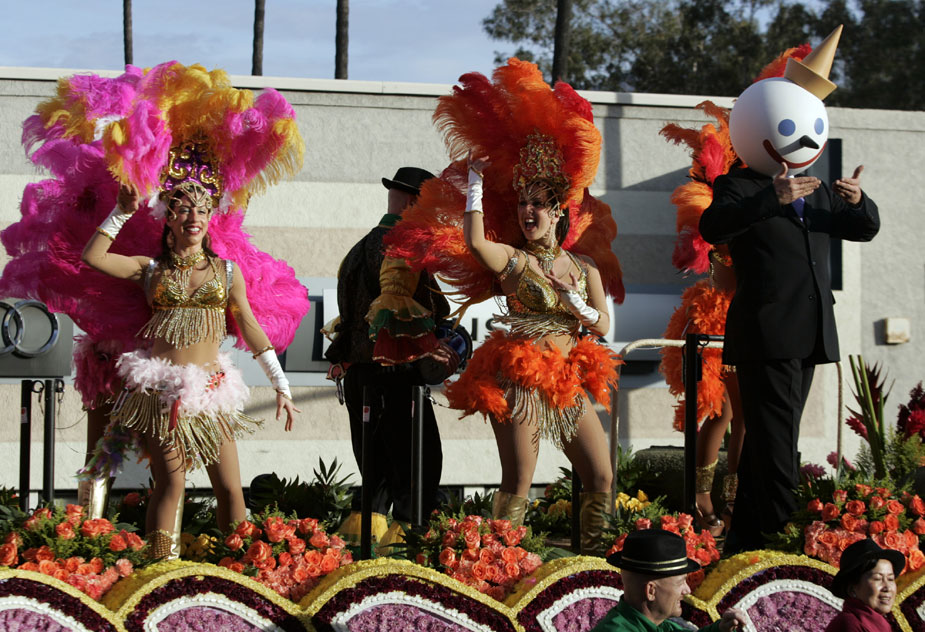 美國當地時間1月1日,第121屆美國玫瑰花車大游行在加州帕薩迪納市隆重舉行。著名影星成龍助陣中國上海世博花車。圖片來源:中國新聞網