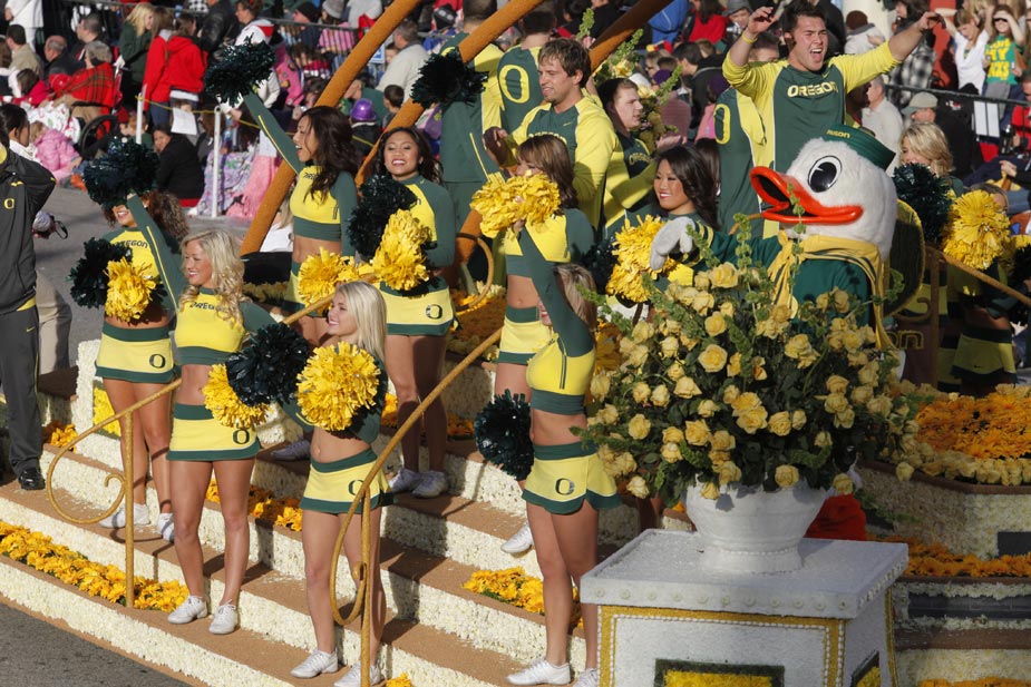 圖為美國(guó)第121屆玫瑰花車(chē)大游行現(xiàn)場(chǎng)。