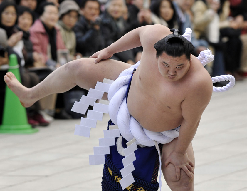 1月6日,日本舉行了傳統(tǒng)的相撲表演迎新年活動(dòng)。
