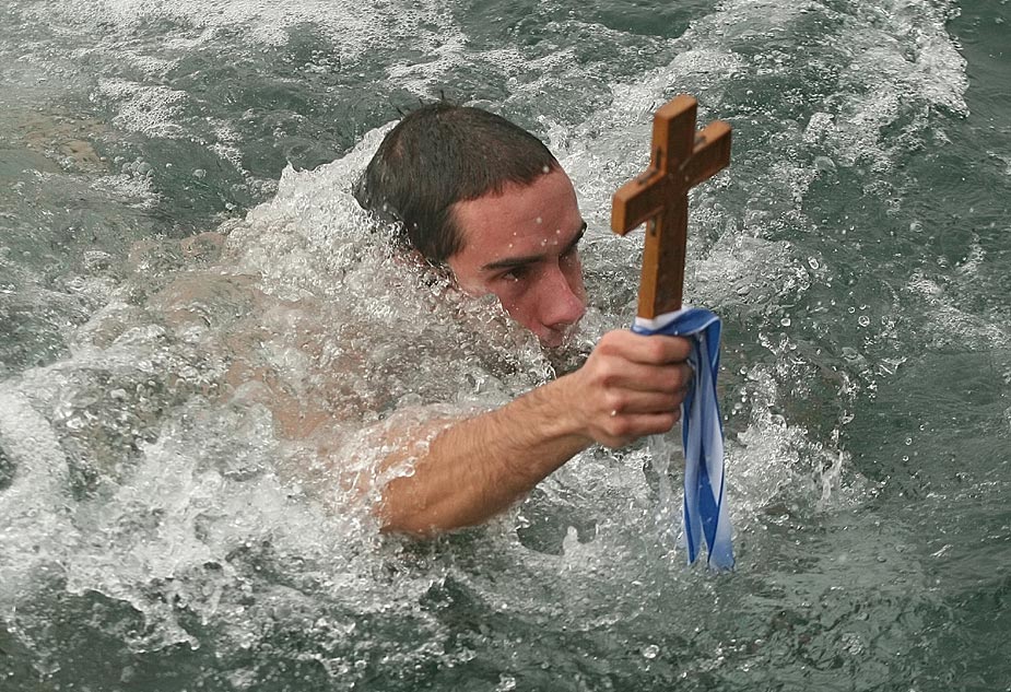 1月6日,在保加利亞卡洛菲爾市,人們?cè)诒涞暮铀刑鸨<永麃喢耖g舞蹈霍洛舞,相互祝福在新的一年里身體健康,事事順?biāo)臁D片來(lái)源:中國(guó)新聞網(wǎng)