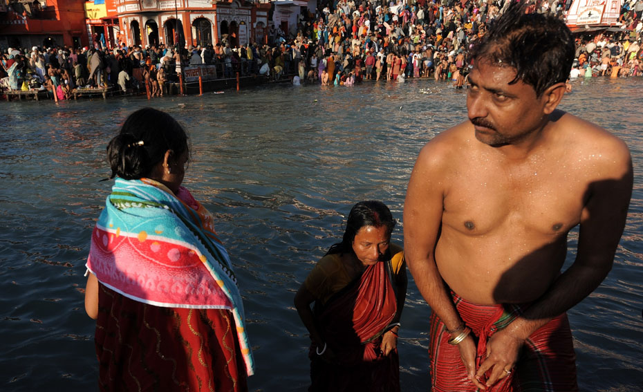 1月14日,數千名印度教信徒前往恒河參加世界上最大的宗教集會大壺節,并在印度圣河——恒河進行了沐浴儀式。圖片來源:中國新聞網