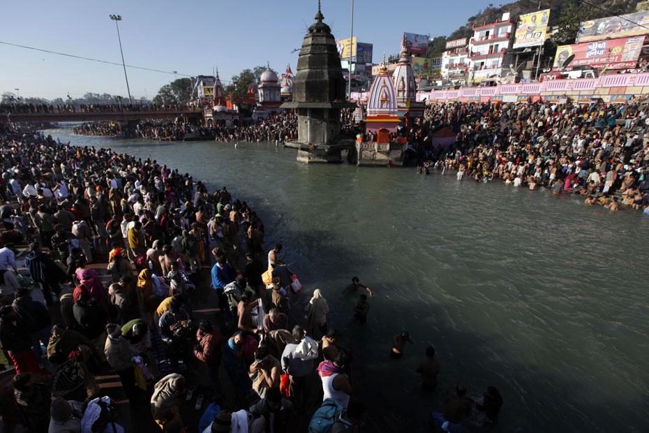 1月14日,數千名印度教信徒前往恒河參加世界上最大的宗教集會大壺節,并在印度圣河——恒河進行了沐浴儀式。圖片來源:中國新聞網