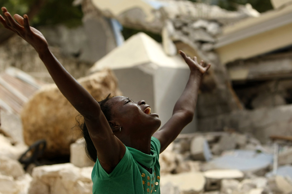 海地7級大地震后,街邊一排排無名尸體已開始腐爛,在巨大的廢墟下時不時的傳出被壓難民的呻吟聲,幾乎夷為平地的首都太子港淪為露天難民營。圖片來源:中國新聞網