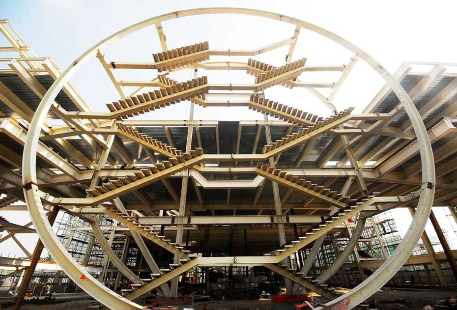 2010年1月21日上海迎來世博會開幕倒計時100天。世博會場館建設進入最后沖刺階段,部分場館已形象初顯。圖為韓國館。鈕一新/CFP