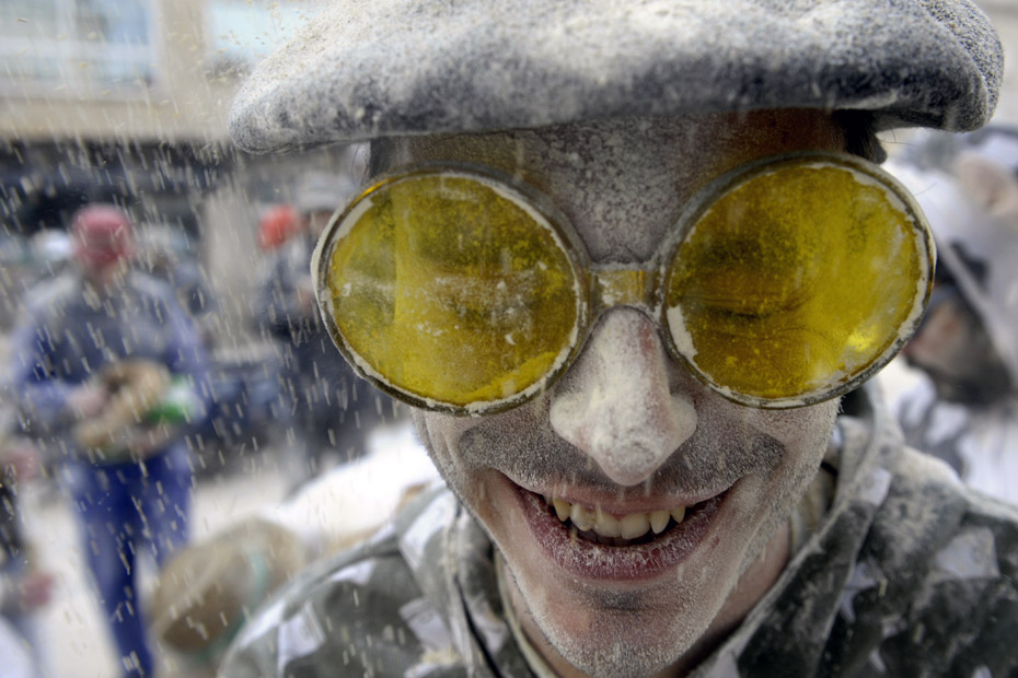 1月24日,西班牙西北部的一座村莊舉辦的狂歡節中上演瘋狂的“面粉大戰”。圖片來源:中國新聞網