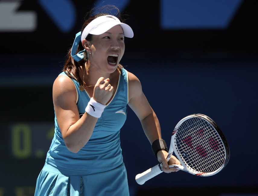 在26日上午進行的澳大利亞網球公開賽中,鄭潔直落兩盤橫掃俄羅斯好手基里連科躋身四強,刷新了個人澳網最佳紀錄。 圖片來源:中國新聞網
