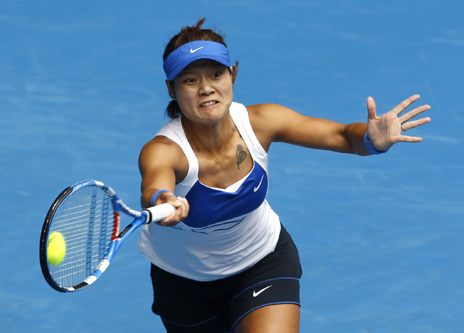 27日,中國(guó)選手李娜在澳大利亞網(wǎng)球公開(kāi)賽上,以2-6、7-6、7-5頑強(qiáng)逆轉(zhuǎn)實(shí)力超群的大威廉姆斯,攜手鄭潔闖入四強(qiáng),并且創(chuàng)下了個(gè)人大滿貫最佳成績(jī)。圖片來(lái)源:中國(guó)新聞網(wǎng)