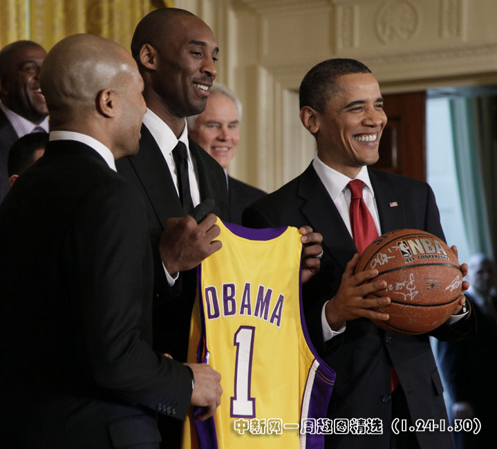 1月25日,在美國首都華盛頓的白宮,美國總統(tǒng)奧巴馬會見了上賽季NBA總冠軍洛杉磯湖人隊教練和球員。圖片來源:中國新聞網(wǎng)>>點擊觀看詳細(xì)內(nèi)容