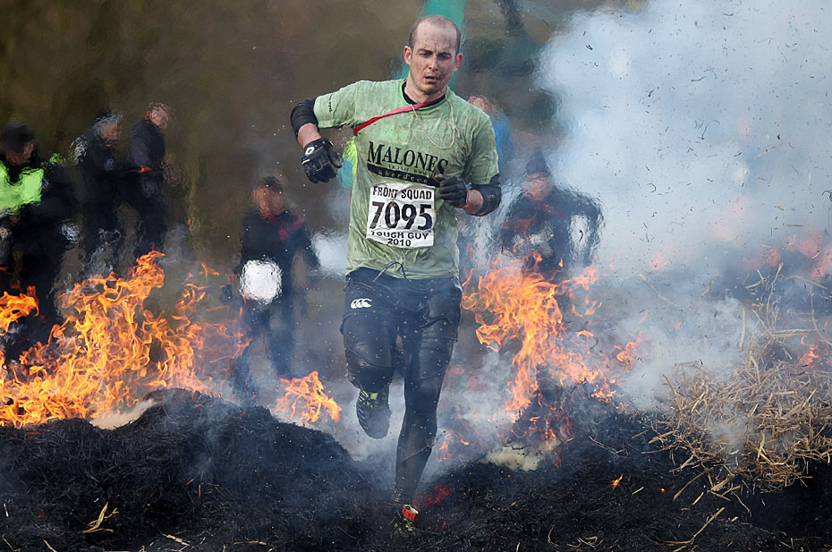 1月31日,在英國小鎮Perton舉行了一場硬漢挑戰賽。圖片來源:中國新聞網