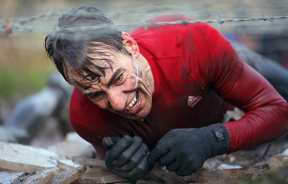 1月31日,在英國小鎮Perton舉行了一場硬漢挑戰賽。圖片來源:中國新聞網
