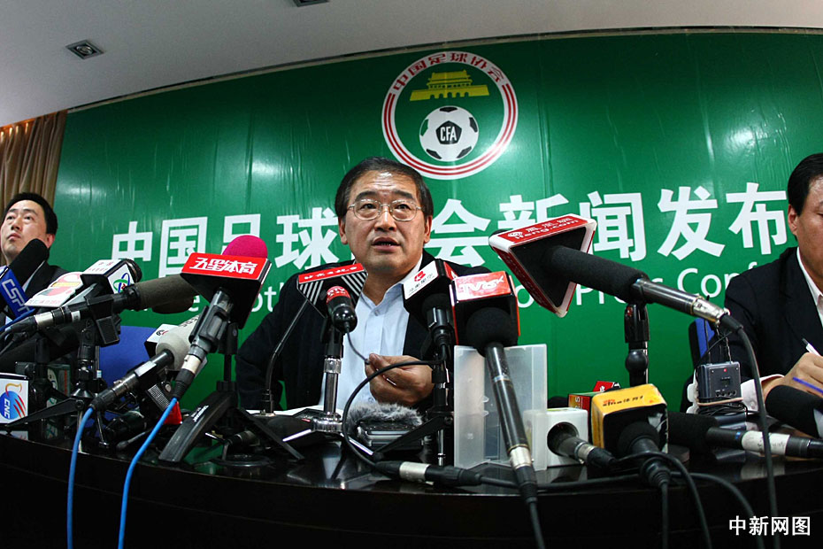圖為中國足協新任掌門人韋迪召開首個新聞發布會現場。中新社記者 富田 攝
