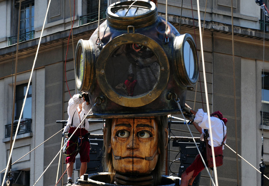 近日,智利首都圣地亞哥街頭,法國一劇團攜巨型提線木偶“小巨人”上街表演,它惟妙惟肖的表情和逼真的神態(tài)引得周圍觀眾的陣陣掌聲。圖片來源:中國新聞網(wǎng)