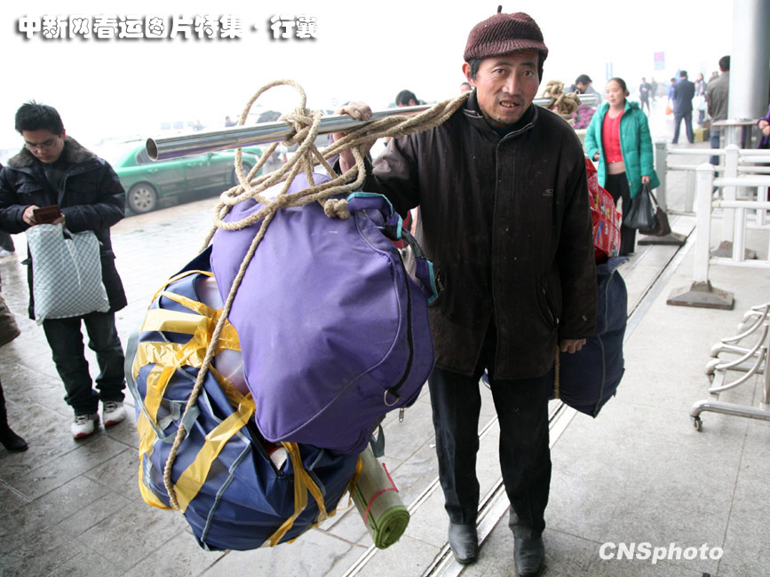 春節臨近,出門在外的人拎著大包小包地回家過年。這行囊或重或輕,可能是帶給父母的孝敬,也可能是帶給愛人的心動,但每個行囊中一定都會裝著人們一年來收獲的喜悅之情。中新社發 鐘山 攝