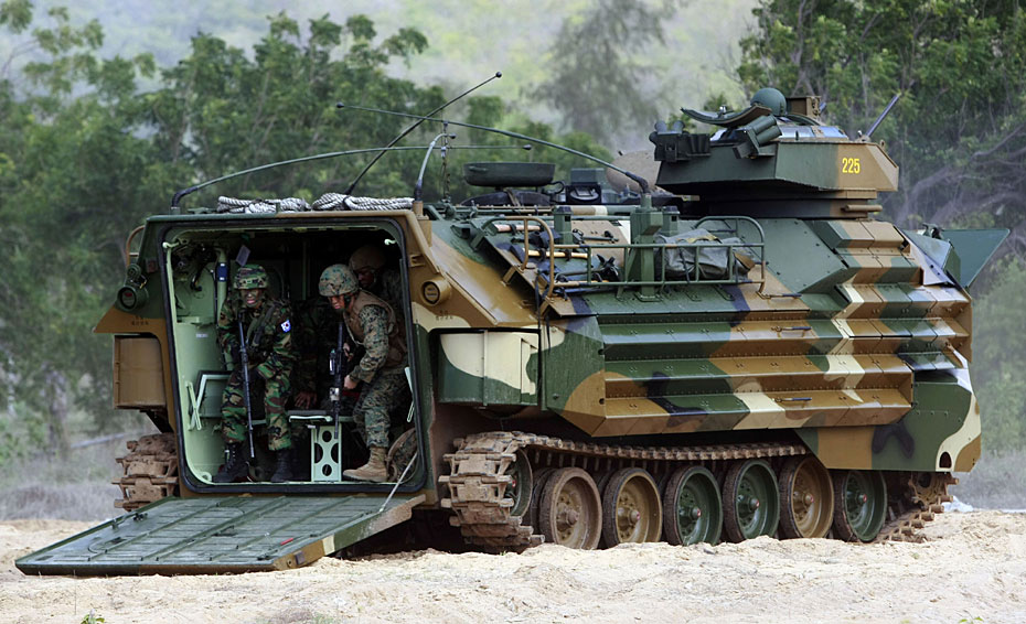 2月4日,參加“金色眼鏡蛇”聯合軍演的各國軍隊,在泰國的Rayong省沙灘進行了兩棲登陸演練。本次聯合軍演共有來自泰國、美國、印度尼西亞、新加坡、日本、韓國的約1.4萬名軍人參加。圖片來源:中國新聞網