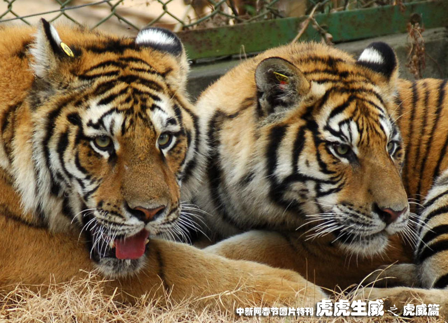 圖為兩只東北虎在廈門海滄野生動物園草叢中漫步。中新社發 黃少毅 攝