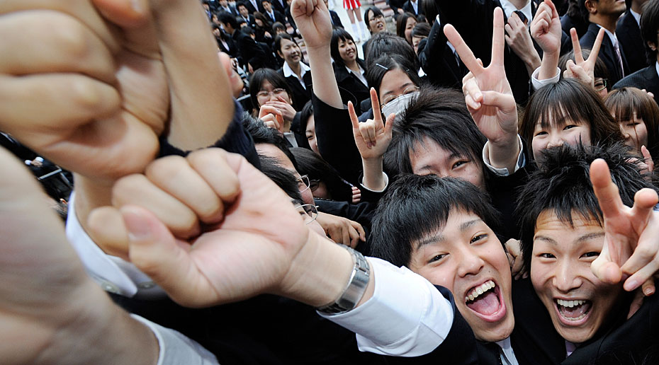 2月10日,日本東京職業學校的學生在求職動員會上伸出拳頭展現信心。日本的失業率達5%,2011屆畢業生將面臨嚴峻就業形式。圖片來源:中國新聞網