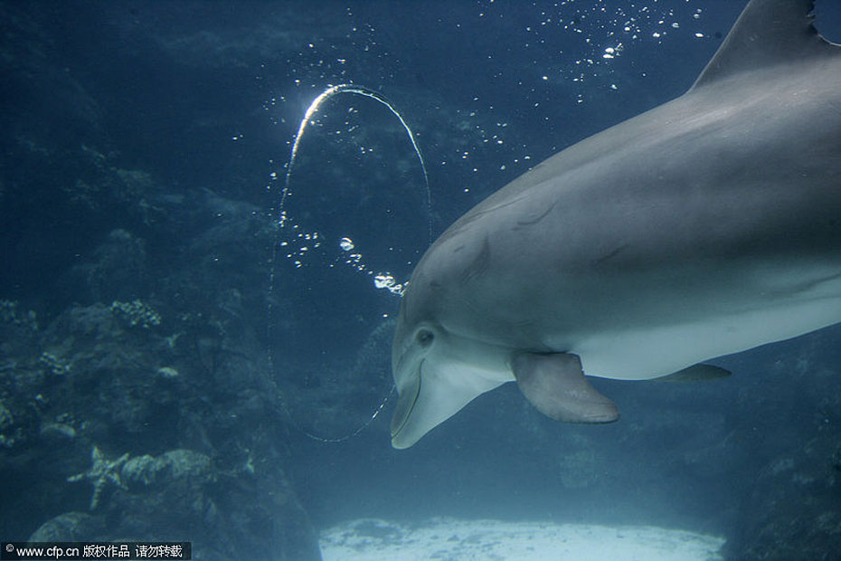 近日,美國奧蘭多海洋世界的一只寬吻海豚吹出“心形”氣泡,似乎要在情人節來臨前夕傳達濃濃愛意。圖片來源:CFP