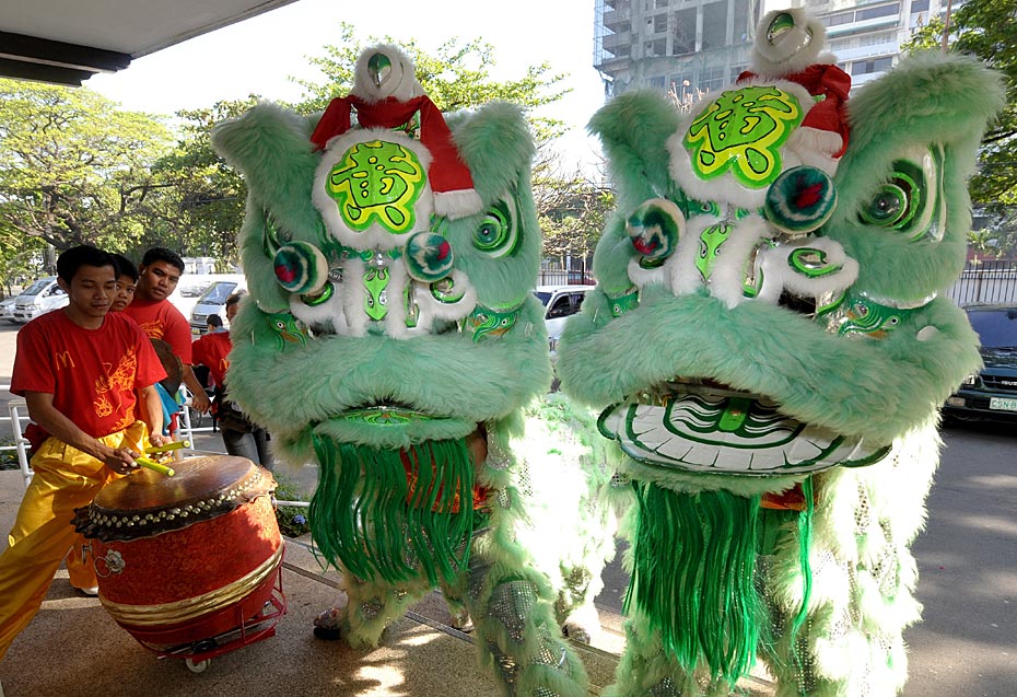 圖為菲律賓馬尼拉華人社區(qū)舞獅迎新年。