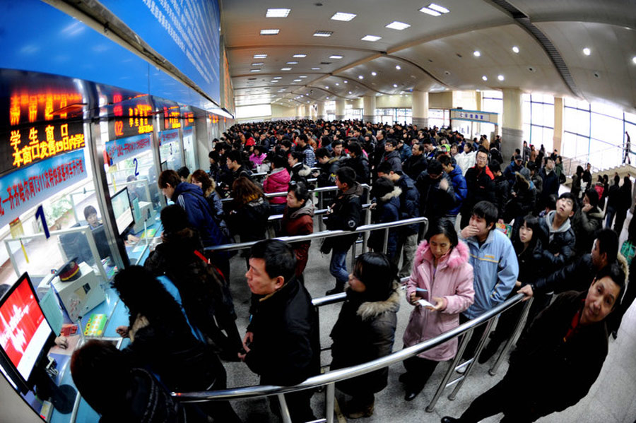 2月18日,農(nóng)歷正月初五,沈陽火車站迎來春節(jié)后首個客流高峰,排隊購票的長排達(dá)到售票處外2公里。以學(xué)生、農(nóng)民工和探親流為主的客流高峰涌進(jìn)車站。針對節(jié)后春運(yùn)潮的提前到來,沈陽鐵路相關(guān)部門啟動預(yù)案,疏導(dǎo)旅客進(jìn)站上車,確保旅客平安出行。紅一 攝