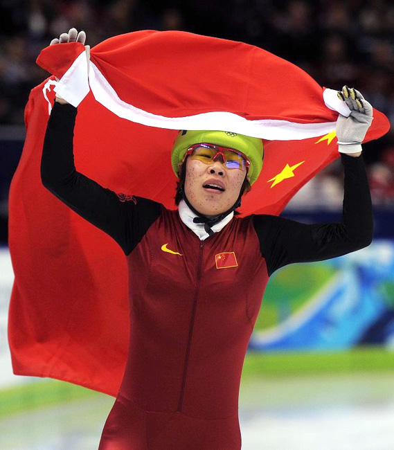 2月21日中午,剛剛結束的冬奧會短道速滑女子1500米決賽中,中國選手周洋力壓各路名將,以破奧運會紀錄的2分16秒993的成績奪冠,為中國代表團添得第三金。圖片來源:中國新聞網